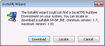 Execute the downloaded file. If you see the following, it means you have either not installed java, or the installer can’t find where you installed it. Rectify as appropriate.