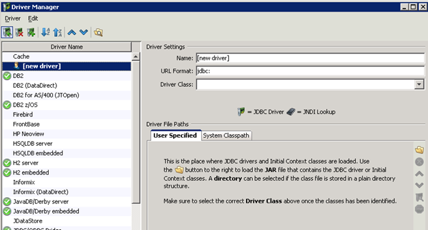 The utility will then present a window in which you can configure the URL format, as well as the actual driver class to use from within the jar file you selected. It will find two different classes, so select the dropdown box and ensure the second one is selected, as shown below. Also, enter the default URL format as also shown in the dialog box below.