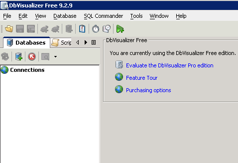 Do not execute the “New Connection Wizard” dialog, as we still have to configure the software to find our Hive JDBC driver. Click close on this and and following windows, until your screen looks similar to what is below…