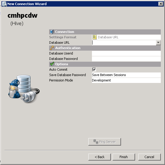 On the next window, enter your network username and password, and also ensure the “Auto Commit” box is unchecked (the hive driver does not support this and will throw an exception if it is checked).